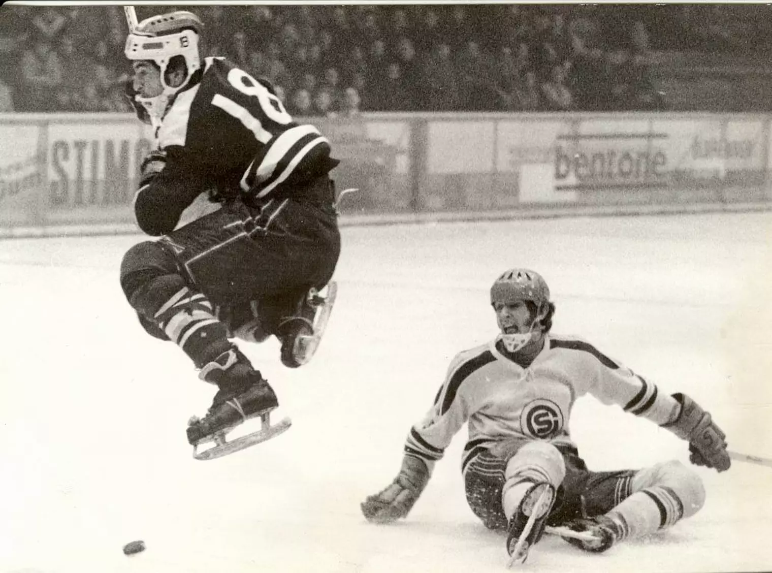 Il faudra réussir le deuxième, contre Veltheim, équipe des faubourgs de Winterthur. Là on joue sur une piste naturelle avec des bandes basses. Hockey de la préhistoire. Servette s'y adapte et gagne 4-1 contre une équipe dans laquelle joue celui qui sera plus tard son entraîneur, Ernst Schneeberger. C'est la promotion en LNB.