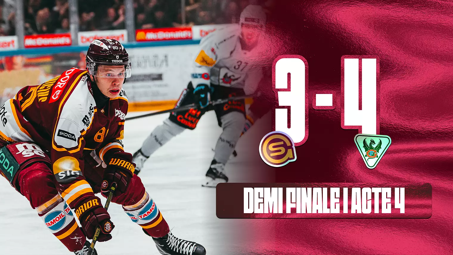 Le GSHC a couru après le score toute la soirée et s’incline 4-3 face à Fribourg. Menés 1-4, les Aigles ont tenté une remontée courageuse, en vain. Désormais menés 3-1 dans la série, ils sont dos au mur et devront réaliser un exploit pour poursuivre leur saison.