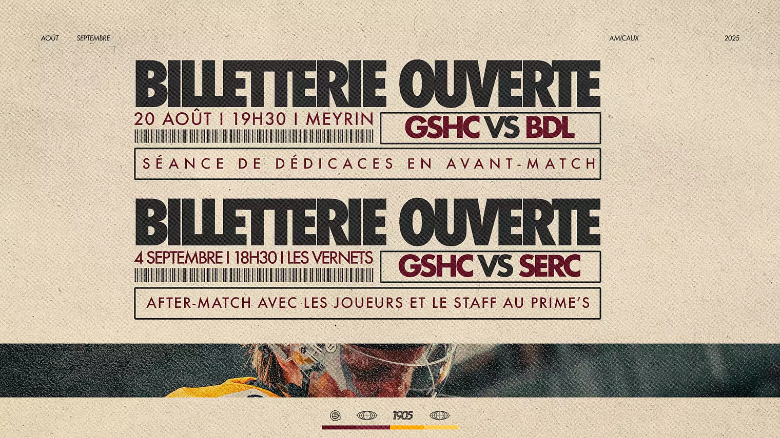 Le mois d’août a déjà pointé le bout de son nez, et avec lui arrivent les premiers matchs amicaux. Parmi eux, deux se joueront sur le territoire genevois. Une occasion parfaite pour venir découvrir sur la glace le GSHC version 25–26… mais pas seulement ! Les Grenat réservent également quelques surprises.