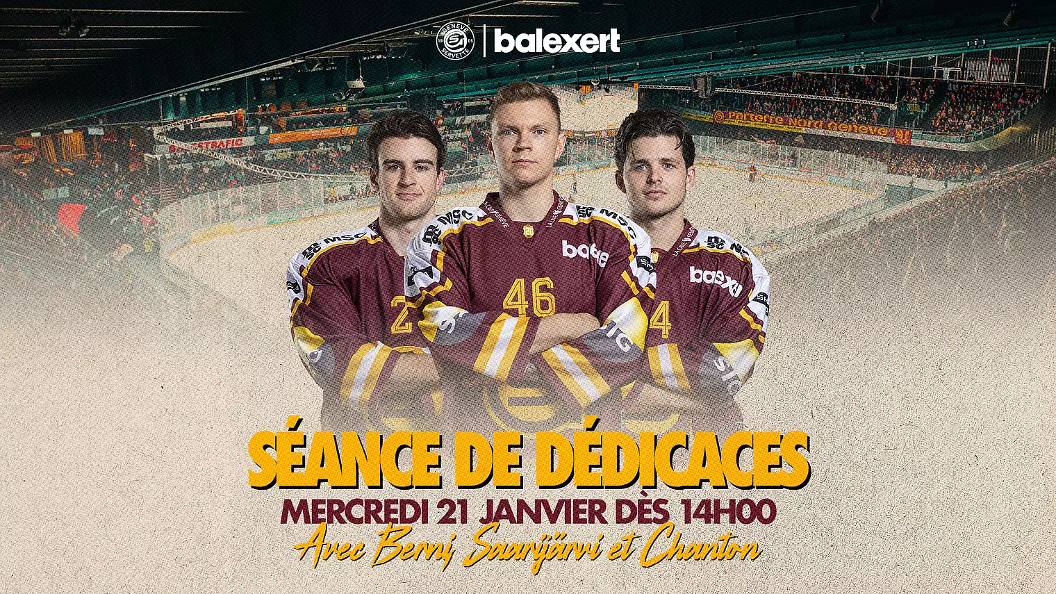 Le Genève-Servette Hockey Club vous donne rendez-vous à Balexert ce mercredi 21 janvier dès 14h00 pour une séance de dédicaces !