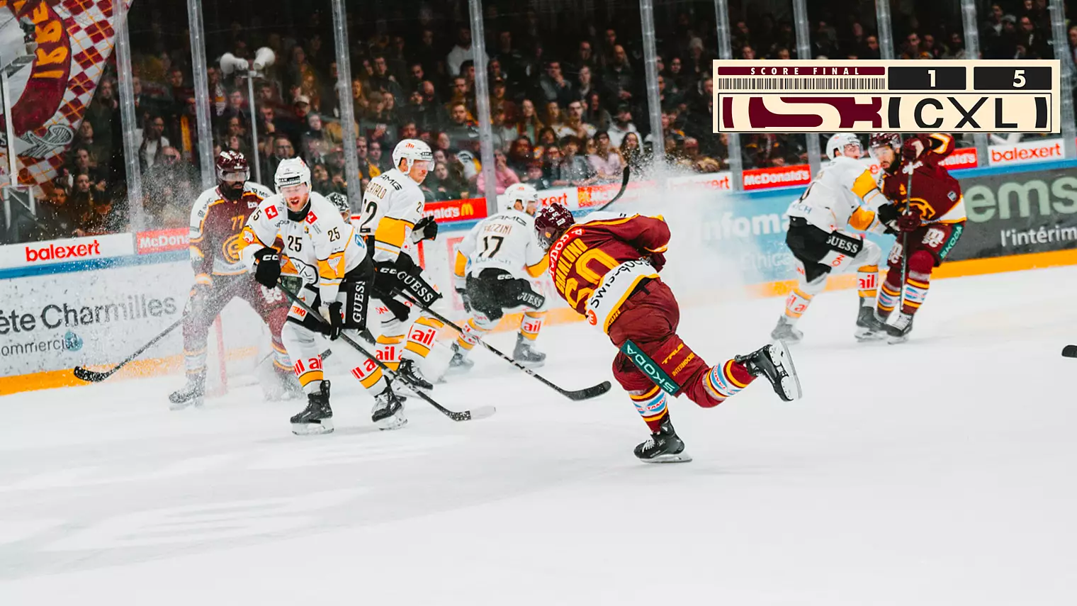 Buts: 6’24 Carrick (Sgarbossa à 5c4) 0-1, 8’08 Le Coultre (Manninen) 1-1, 29’26 Carrick (Sanford, Omark) 1-2, 39’41 Thürkauf (Canonica, Dahlström) 1-3, 48’19 Thürkauf (Tanner) 1-4, 57’43 Bertaggia dans la cage vide