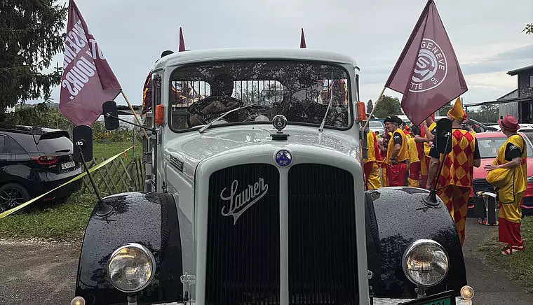 20.08.2025 – 6 joueurs du GSHC défilent sur un camion pour la Fête des Vendanges